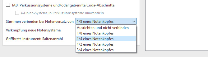 Wie SmartScore bei der Notenerkennung mit horizontalen Notenabständen umgeht, wann Noten zusammengeführt werden und wann nicht, lässt sich tatsächlich beeinflussen. Im Fenster "Notenerkennung" findest du auf dem Register "Optionen" dazu eine Auswahlliste mit der Bezeichnung "Stimmen verbinden bei Notenversatz von":