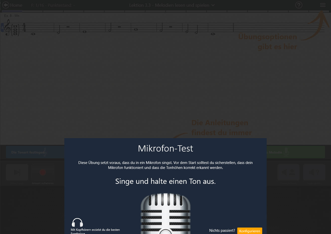 - Nutze ein MIDI-Keyboard (derzeit nur unter Windows, Mac und iOS), um Antworten zu spielen oder auch um Programmfunktionen per MIDI-Fernsteuerung zu beeinflussen.