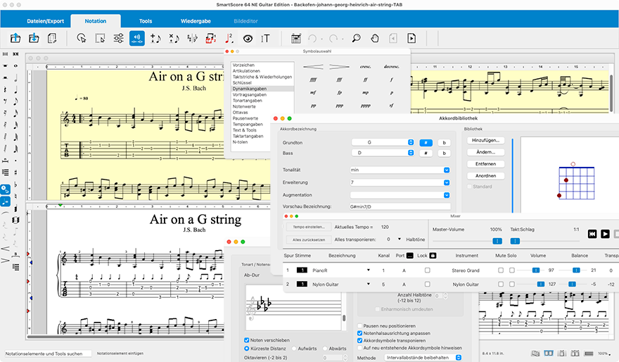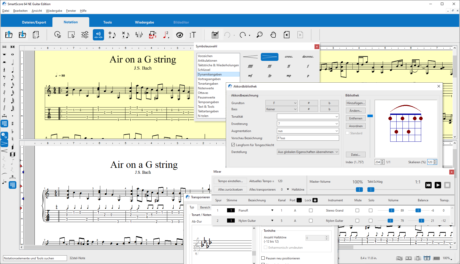 SmartScore 64 Guitar NE ist das Tool für Gitarre und andere (Bund)-Instrumente mit innovativen, leistungsstarken und einzigartigen Features, die auf die Erkennung und Erarbeitung von Standard- und Tabulaturnotation sowie von Akkorden und Griffbildsymbolen ausgerichtet sind. Bei einer Erkennung von bis zu zwei Notensystemen pro Akkolade sind Einzelstimmen, Leadsheets, TABs, Duette, Klaviermusik oder Kombinationen aus Standard- und TAB-Notation das Metier der Guitar-Edition.