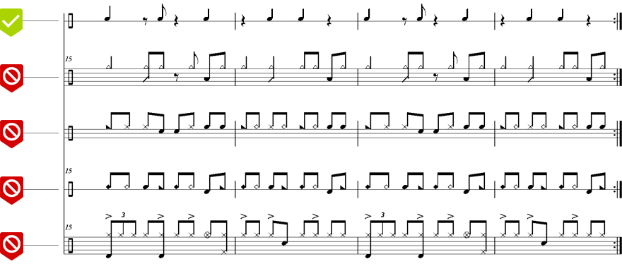Bis heute hat sich keine einheitliche Schreibweise bei der Schlagzeug und Percussionnotation durchgesetzt. Einen Standard im Hinblick auf die zu verwendenden Zeichen und Notenkopfformen gibt es nicht. Deshalb sollte man vor diesem Hintergrund wissen, was in SmartScore möglich ist und was nicht.