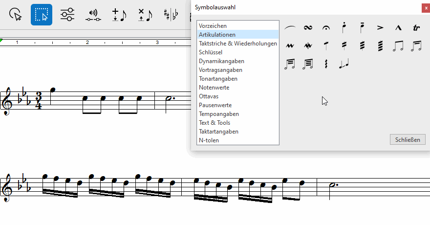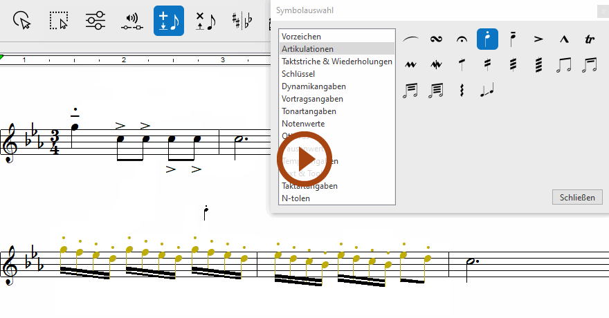 . Oder, falls das benötigte Artikulationszeichen bereits in den Noten vorhanden ist, verwende die