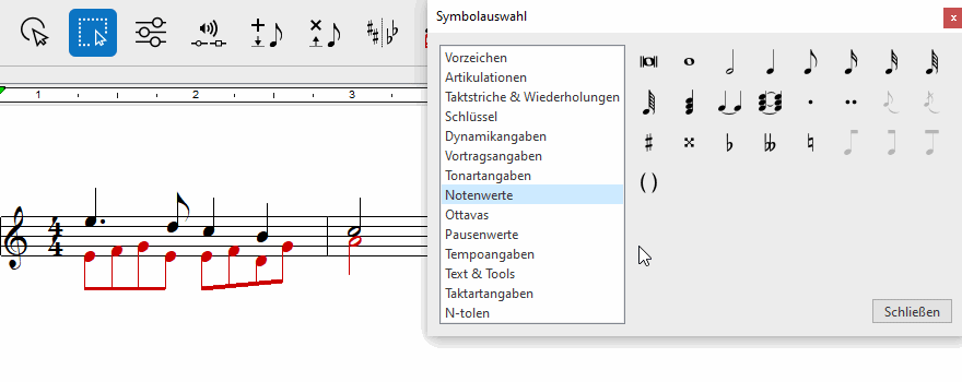 oberhalb der Noten erscheinen, ziehst du den Rahmen