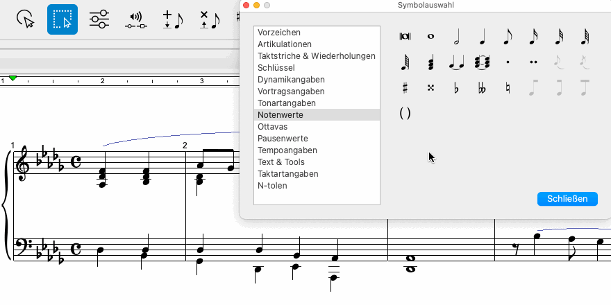 . Du findest es in den Toolleisten Notation, Tools und Wiedergabe. Noch einfacher gelingt der Aufruf des Eigenschaften-Tools mit der ESC-Taste auf der Computertastatur. Klicke anschließend auf die Metronomangabe, die du bearbeiten möchtest.