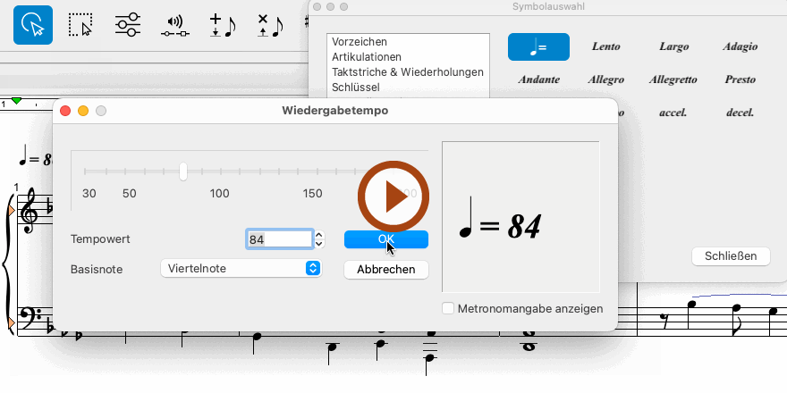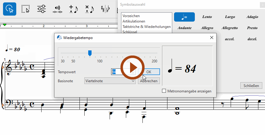 Animation (0:50) - Eine Metronomangabe einfügen, bearbeiten und entfernen