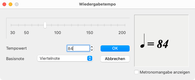 Tempowert-Textfeld passt du das mit der Metronomangabe verknüpfte Wiedergabetempo an. Die angezeigte Zahl steht für die