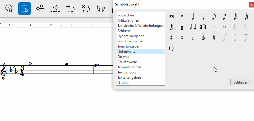 . Du findest es in den Toolleisten Notation, Tools und Wiedergabe. Noch einfacher gelingt der Aufruf des Eigenschaften-Tools mit der ESC-Taste auf der Computertastatur. Klicke dann auf ein Trillersymbol (tr) in deinem Dokument