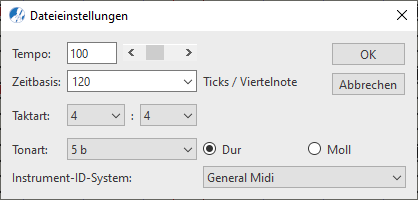 2. MIDI-Dateieinstellungen und MIDI-Takteigenschaften