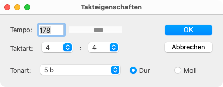 Um die MIDI-Takteigen­schaften aufzu­rufen, doppel­klickst du einfach auf eine Takt­zahl in der Leiste ober­halb des Zeit­rasters.