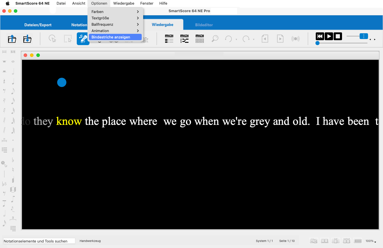 Es muss nicht immer nur Arbeit sein. Deshalb haben wir in SmartScore eine Funktion mit Spaßfaktor integriert, die aber auch hilfreich z. B. beim Erlernen neuer Lieder, Songs oder Chorstücke sein kann: die Karaoke-Funktion.