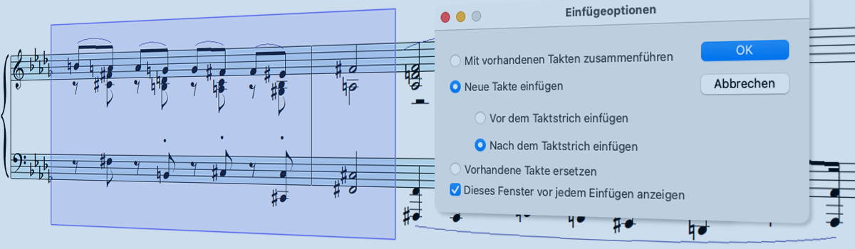 Einzelne Notationssymbole und -elemente oder ganze Takte und Musikbereiche kopieren, ausschneiden und wieder einfügen? Das geht in SmartScore und ganz besonders einfach mit Tastaturbefehlen.