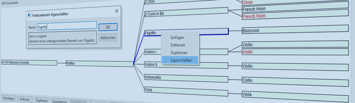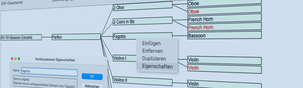 Jede Orchester-, Ensemble- oder Songbook-Partitur ist unabhängig von der Besetzungsgröße immer gleich und hierarchisch strukturiert. Eine Partitur besteht aus Notensystemen, die wiederum eine oder auch mehrere polyphone Stimmen enthalten. Mit dem Partiturmanager von SmartScore kann man die Struktur/