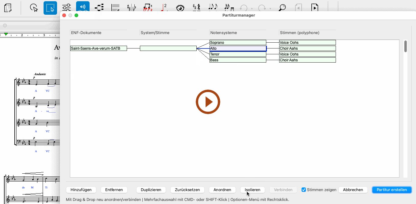 Klicke und markiere in der Partiturmanager-Ansicht die