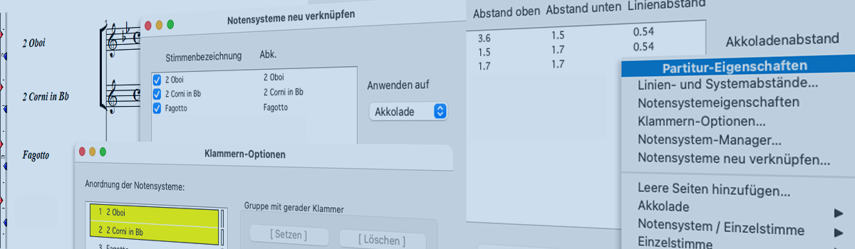 Um die Partitur-Eigenschaften aufzurufen, wählst du (ESC-Taste) einfach mit der rechten Maustaste in ein beliebiges Notensystem.