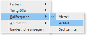 Tempoball zur besseren Orientierung oberhalb des Liedtextes rhythmisch zur Musik. In diesem Untermenü kannst du festlegen, wie der Ball springen soll:
