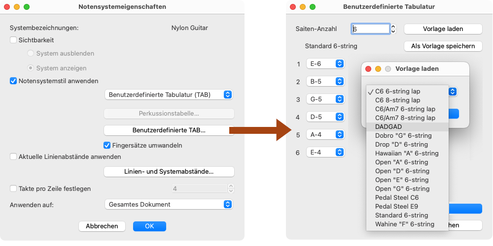 Öffne die Noten­system­eigen­schaften des fraglichen Tabulatur­systems.