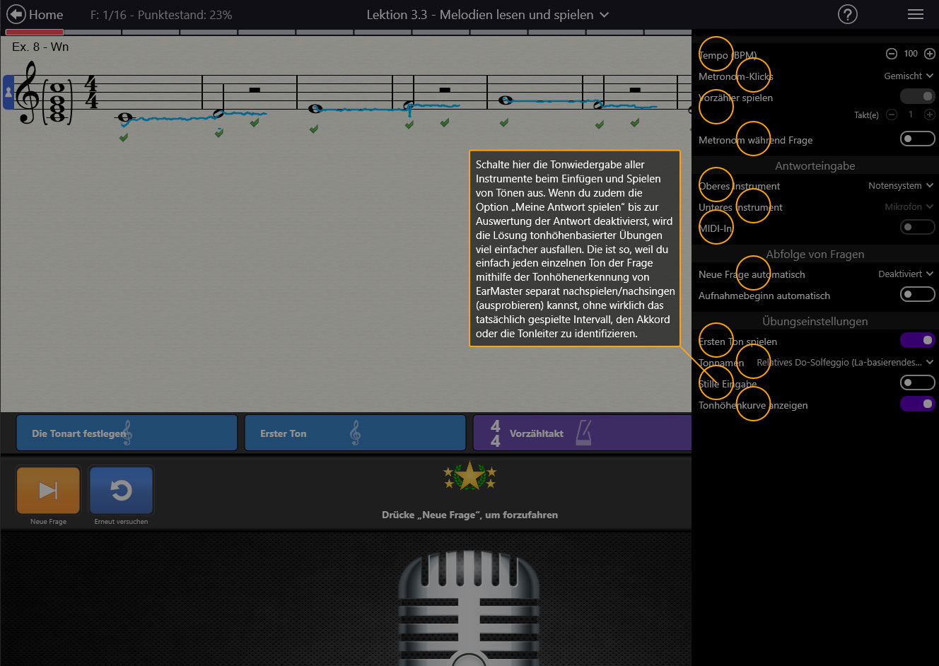 Nutze die fortschrittlichen Funktionen der EarMaster‑App