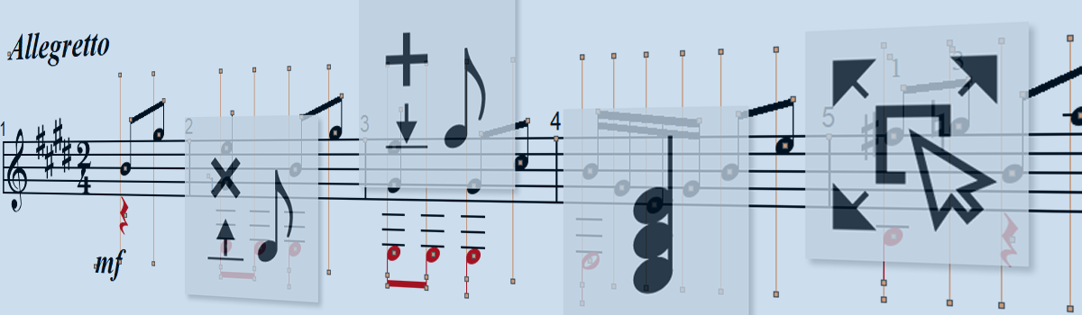 SmartScore stellt dir verschiedene Bearbeitungsmodi zur Verfügung, auf die man bei der Arbeit mit einem erkannten Notentext nicht verzichten kann: Einfügen, Löschen, Ausrichten und Akkord/Cluster.