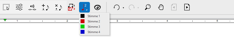 Klicke auf eine Note oder Pause, die du der ausgewählten Stimme zuordnen möchtest. Die Zuordnung anderer Stimmen in diesem Takt wird automatisch aktualisert.