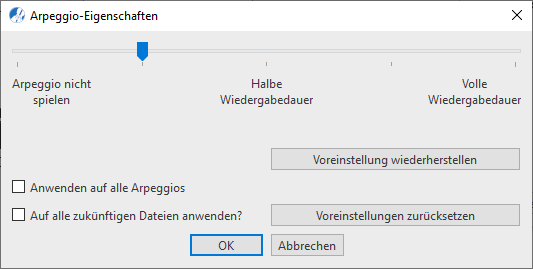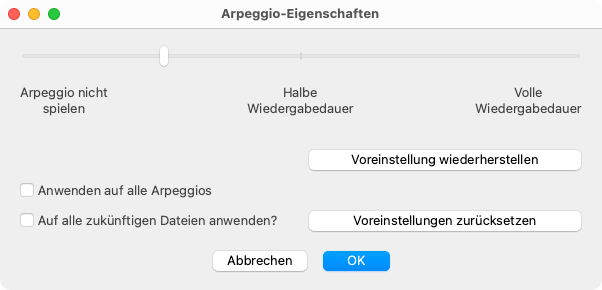 Auf alle anwenden: Markiere dieses Feld, damit die Wieder­gabe­eigen­schaften von allen Arpeggios im gesamten Dokument über­nommen werden.