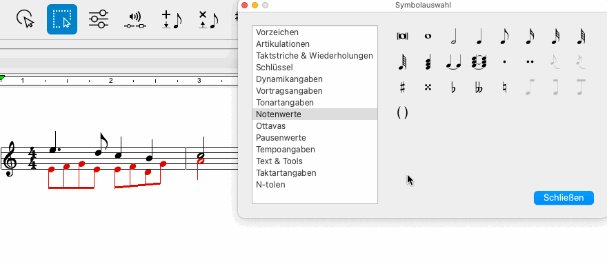 unterhalb der Noten positioniert wird, klicke und ziehe
