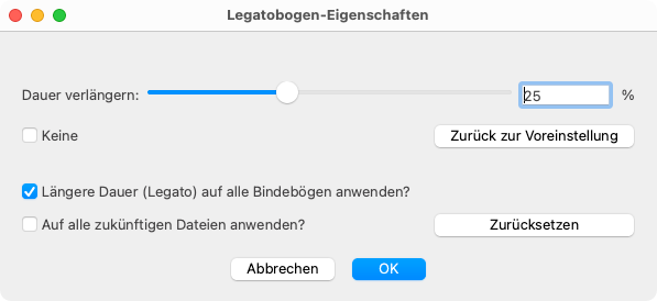 Auf alle anwenden: Markiere dieses Feld, damit die Wiedergabeeigenschaften von allen Legatobögen im gesamten Dokument übernommen werden.