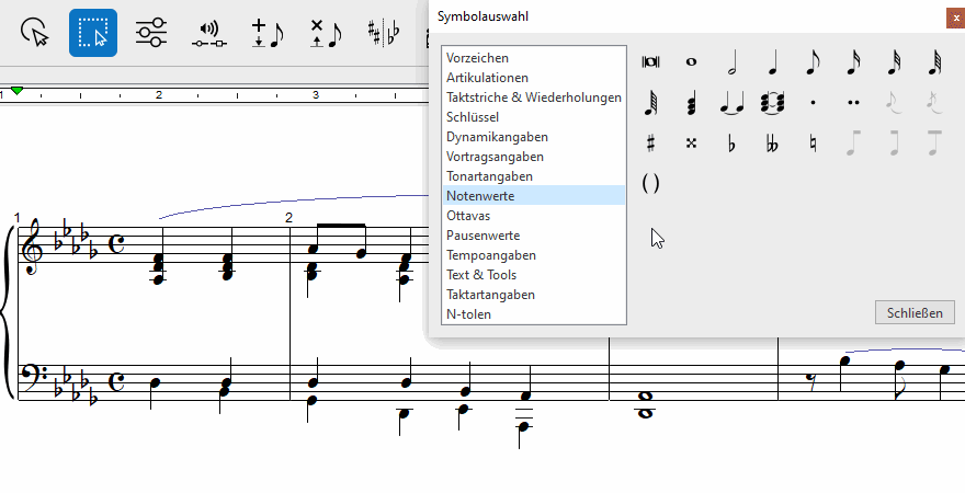 . Du findest es in den Toolleisten Notation, Tools und Wiedergabe. Noch einfacher gelingt der Aufruf des Eigenschaften-Tools mit der ESC-Taste auf der Computertastatur. Klicke anschließend auf die Metronomangabe, die du bearbeiten möchtest.