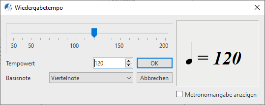Tempowert-Textfeld passt du das mit der Metronomangabe verknüpfte Wiedergabetempo an. Die angezeigte Zahl steht für die