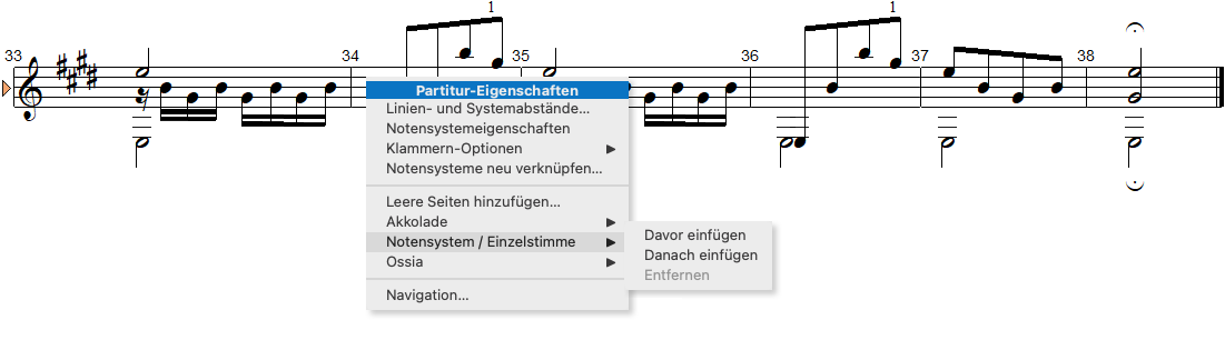 Ein Notensystem in ein bestehendes ENF-Dokument einzufügen oder aus diesem zu entfernen bzw. es ausblenden geht ganz leicht. Solche Systembearbeitungen erledigst du einfach mit dem Eigenschaften-Tool mittels Rechtsklick in ein beliebiges Notensystem. Wie es geht, erfährst du hier.