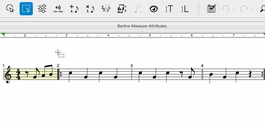 Start|Inhalt|Notenbearbeitung|Taktstriche, Wiederholungen|   Takt-, Taktstrichattribute