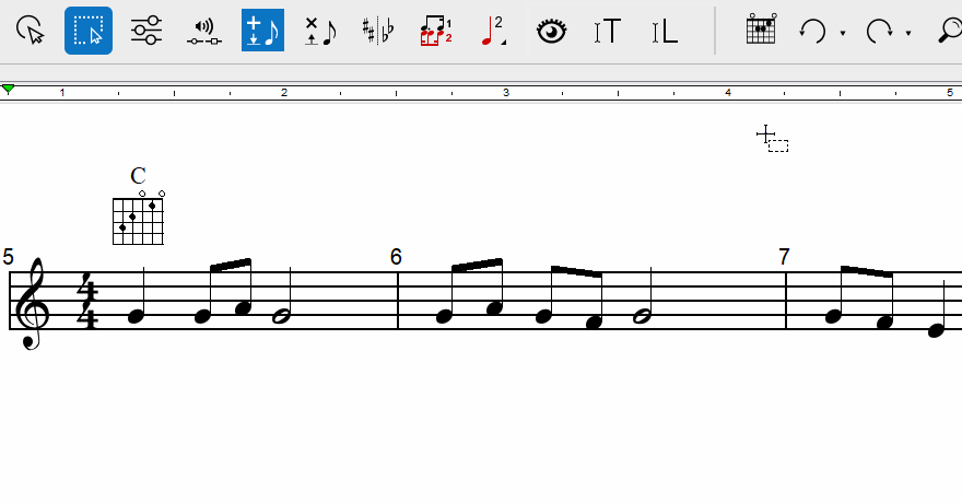Aktiviere das Akkord/Griffbild-Tool in der Toolleiste Notation.