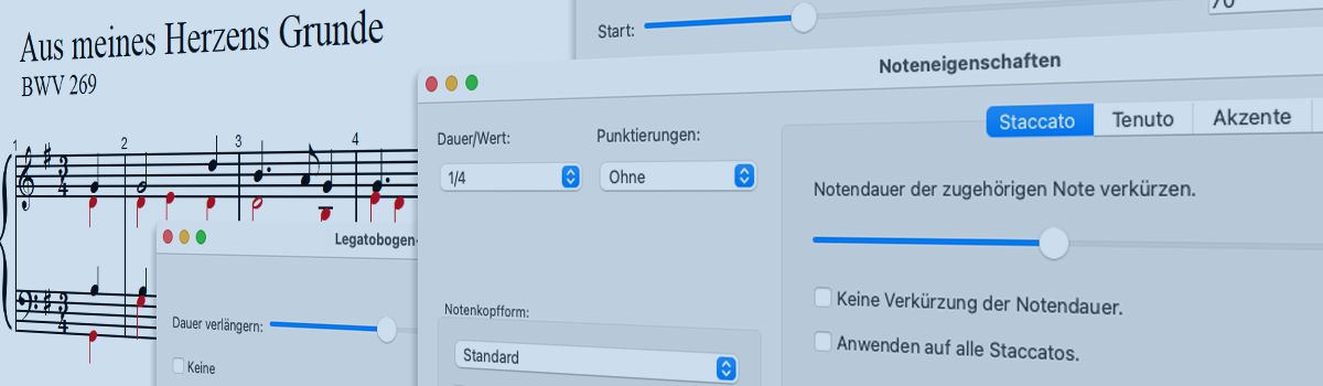 Du kannst die Eigenschaften eines einzelnen Symbols oder aller Symbole des gleichen Typs im gesamten Dokument ändern und sogar globale Voreinstellungen für Notationselemente und -symbole individuell anpassen.