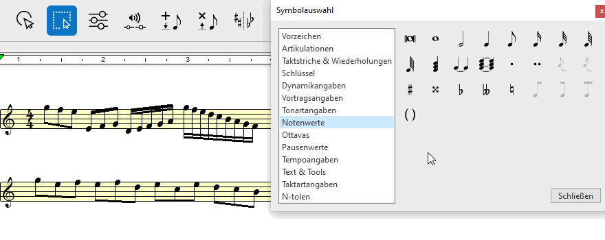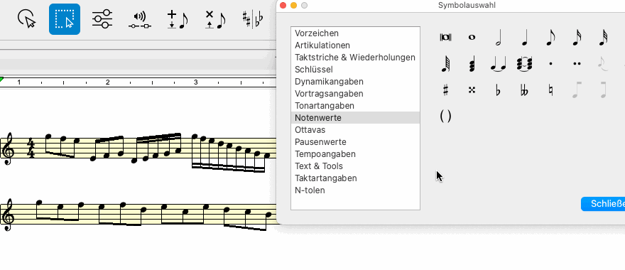 oder Pausen, die du zu einer N-tole zusammenfassen möchtest. Sobald du die Maustaste loslässt, wird das N-tolen-Symbol eingefügt.