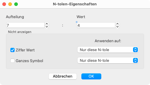 Nicht anzeigen: Ganzes Symbol: Blendet das N-tolen-Symbol (Ziffer und/