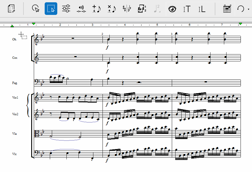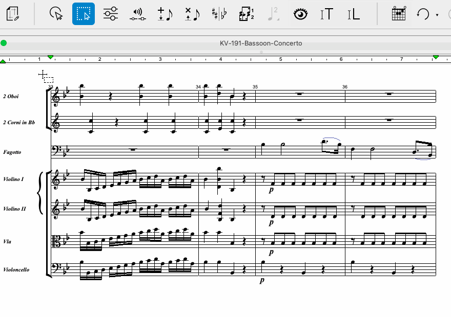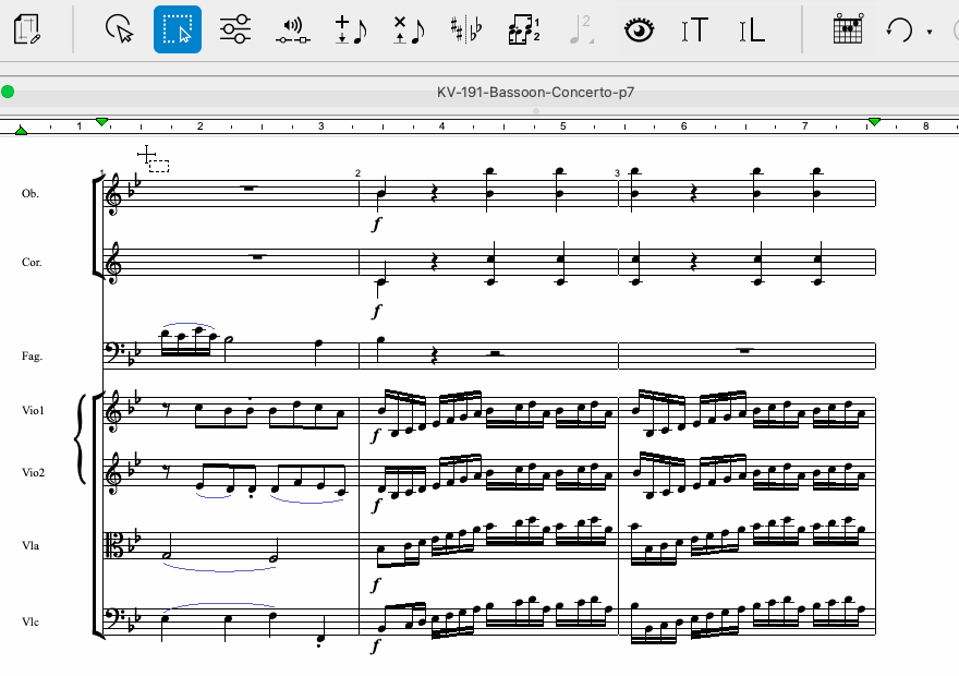Positioniere den Mauszeiger auf dem Notensystem, das mit einem nächsten System oder einer nächsten Akkolade verbunden werden soll. Drücke dann