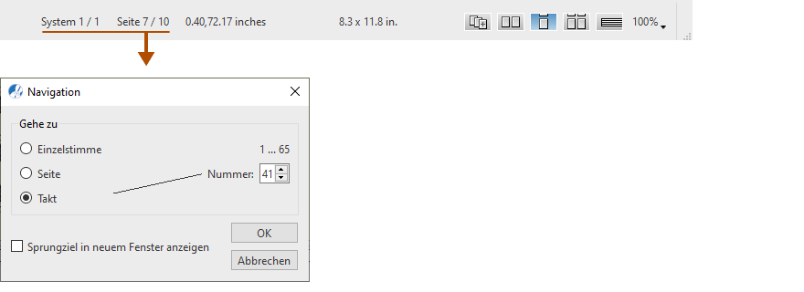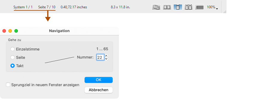 Zu einem Takt, einer Seite oder Einzelstimme springen …