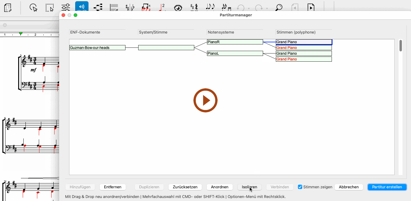 Klicke und markiere in der Partiturmanager-Ansicht die