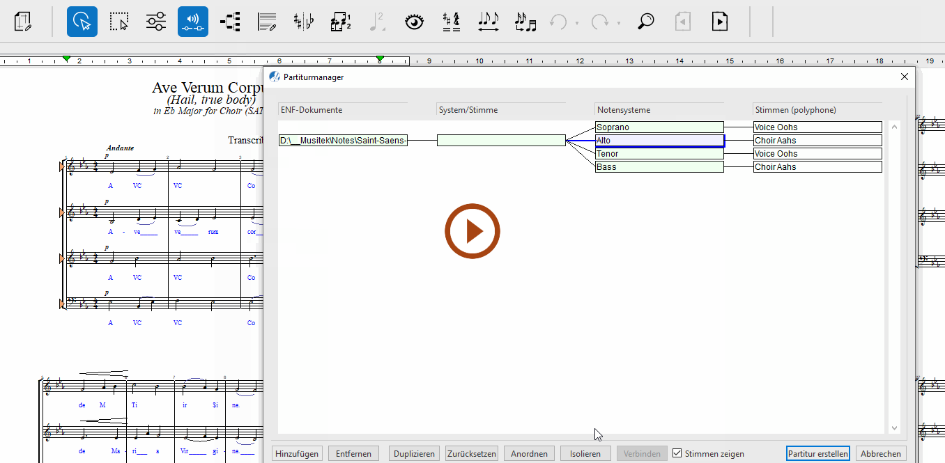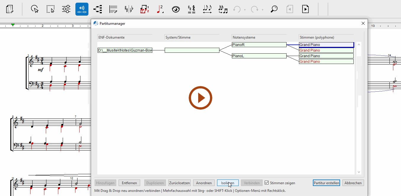 Partiturmanager für das oder die aktuell geöffneten ENF-Dokumente aufzurufen, klickst du auf die