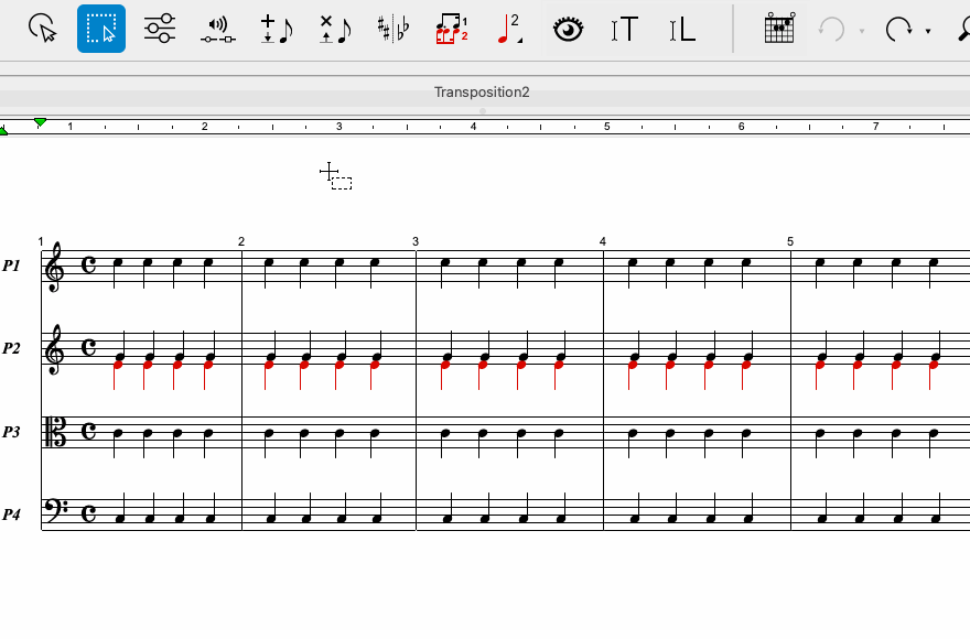 1. Die Transposition auf ein einzelnes Notensystem begrenzen