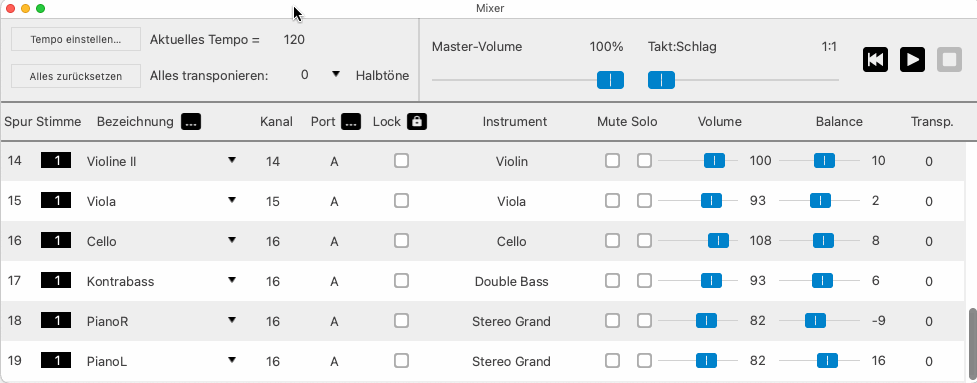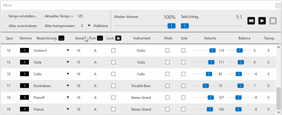 Port A von allen MIDI-Kanälen verwendet. Wenn du nun im Mixer für ein Instrument/