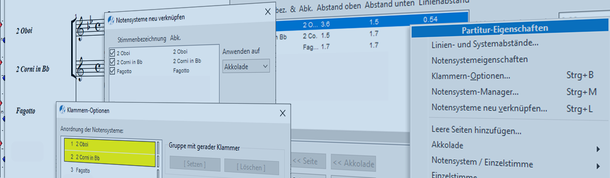 Um die Partitur-Eigenschaften aufzurufen, wählst du (ESC-Taste) einfach mit der rechten Maustaste in ein beliebiges Notensystem.