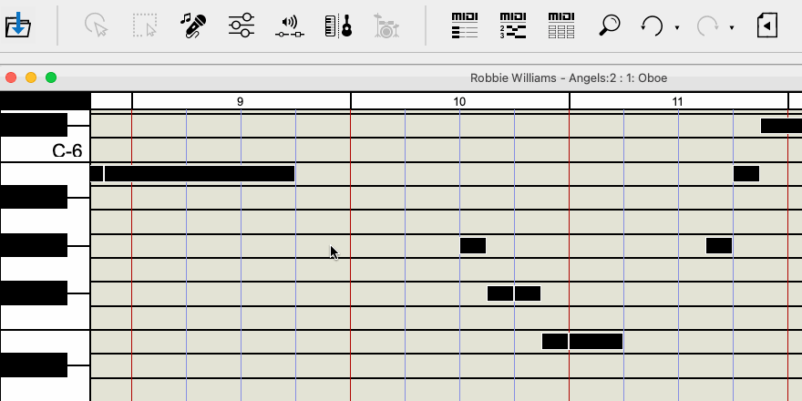 Um die MIDI-Takteigenschaften aufzurufen, doppelklickst du einfach auf eine Taktzahl in der Leiste oberhalb des Zeitrasters.