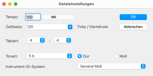 2. MIDI-Dateieinstellungen und MIDI-Takteigenschaften