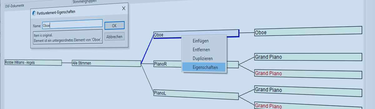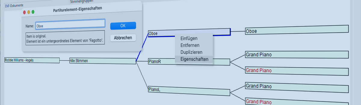 Jede Orchester-, Ensemble- oder Songbook-Partitur ist unabhängig von der Besetzungsgröße immer gleich und hierarchisch strukturiert. Eine Partitur besteht aus Notensystemen, die wiederum eine oder auch mehrere polyphone Stimmen enthalten. Mit dem Partiturmanager von SmartScore kann man die Struktur/